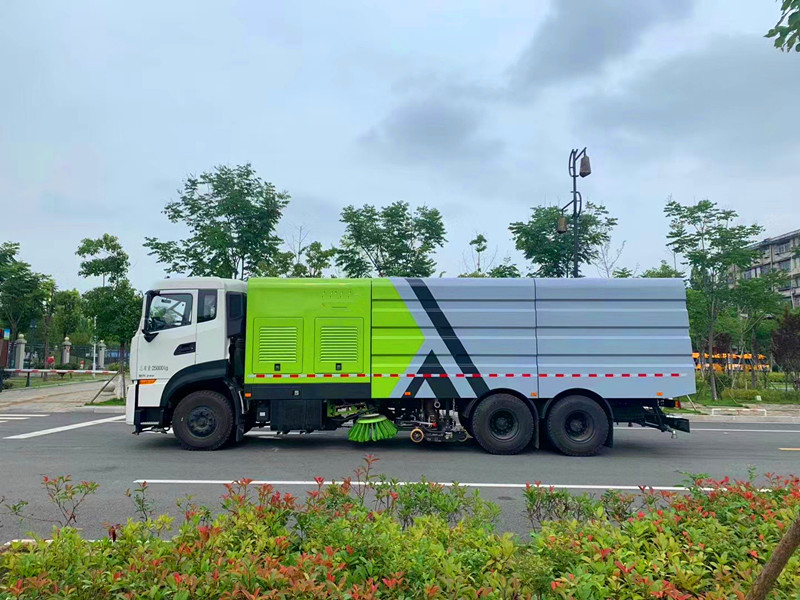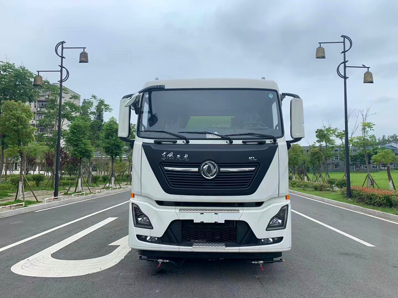 22立方天龍洗掃車采用東風(fēng)天龍DFH1250D4型國六二類汽車底盤改裝,加裝副發(fā)動機、風(fēng)機、高壓水泵、清水箱、垃圾箱、左右立掃、帶噴水桿的寬吸嘴、低壓沖洗系統(tǒng)、掃盤降塵系統(tǒng)、液壓系統(tǒng)、專用裝置電控系統(tǒng)和副車架等改裝而成。副發(fā)動機驅(qū)動風(fēng)機和高壓水泵,副發(fā)動機采用東風(fēng)康明期6缸柴油發(fā)動機。風(fēng)機用8.0高壓離心風(fēng)機,效率高、風(fēng)量大,**風(fēng)量達23500m3/h。高壓水泵采用同際知名GTM-GF36型柱塞柱,流量合適,壓力高,允許**壓力達10MPa,清水箱充分利用了車載空間,容積大,容積達12m3。垃圾箱采用單層不銹鋼結(jié)構(gòu),傾翻卸料,帶高壓位自潔裝置。自潔裝置可在垃圾箱卸料時幫助卸料,清洗垃圾箱內(nèi)部。左右立掃為單掃盤,減少了掃刷數(shù)量和掃刷消耗量,能降低使用成本。左右立掃分開**,可實現(xiàn)左掃、右掃和全掃等不同作業(yè)模式。寬吸嘴的吸口寬度達到2418mm,確保作業(yè)總寬度大于3.5mm。4個高度可調(diào)的吸嘴輪,能方面調(diào)整和保證吸嘴與路面間的合理間隙。吸嘴內(nèi)高有噴水桿,盡可能多地將高壓洗滌噴嘴布置在吸嘴內(nèi)部,不但清洗效果好,還能**限度減少高壓水氣流沖起污物產(chǎn)生的二次污染。左右噴水桿安裝在吸嘴上,隨吸嘴升降,結(jié)構(gòu)簡單緊湊,保證噴水桿的離地高度固定不變,達到**清洗效果。開式液壓系統(tǒng)驅(qū)動左右立掃升降、左右掃肋旋轉(zhuǎn)、吸嘴升降、垃圾箱后門開閉、垃圾箱傾翻復(fù)位等機械動作。底盤變速箱側(cè)取力器驅(qū)動低壓水泵,實現(xiàn)灑水車的低壓沖洗功能。一鍵式作業(yè)起動和停機操作。