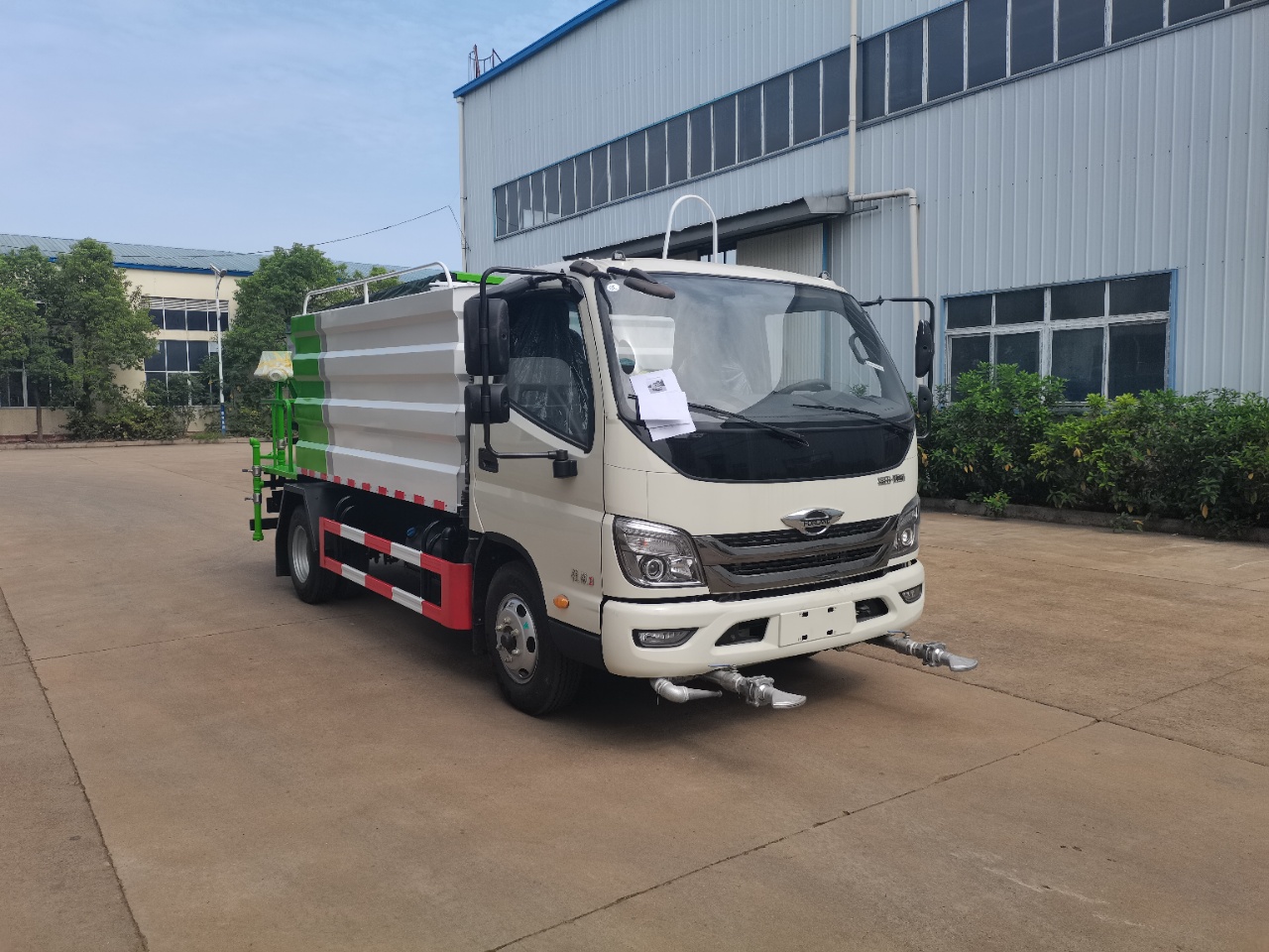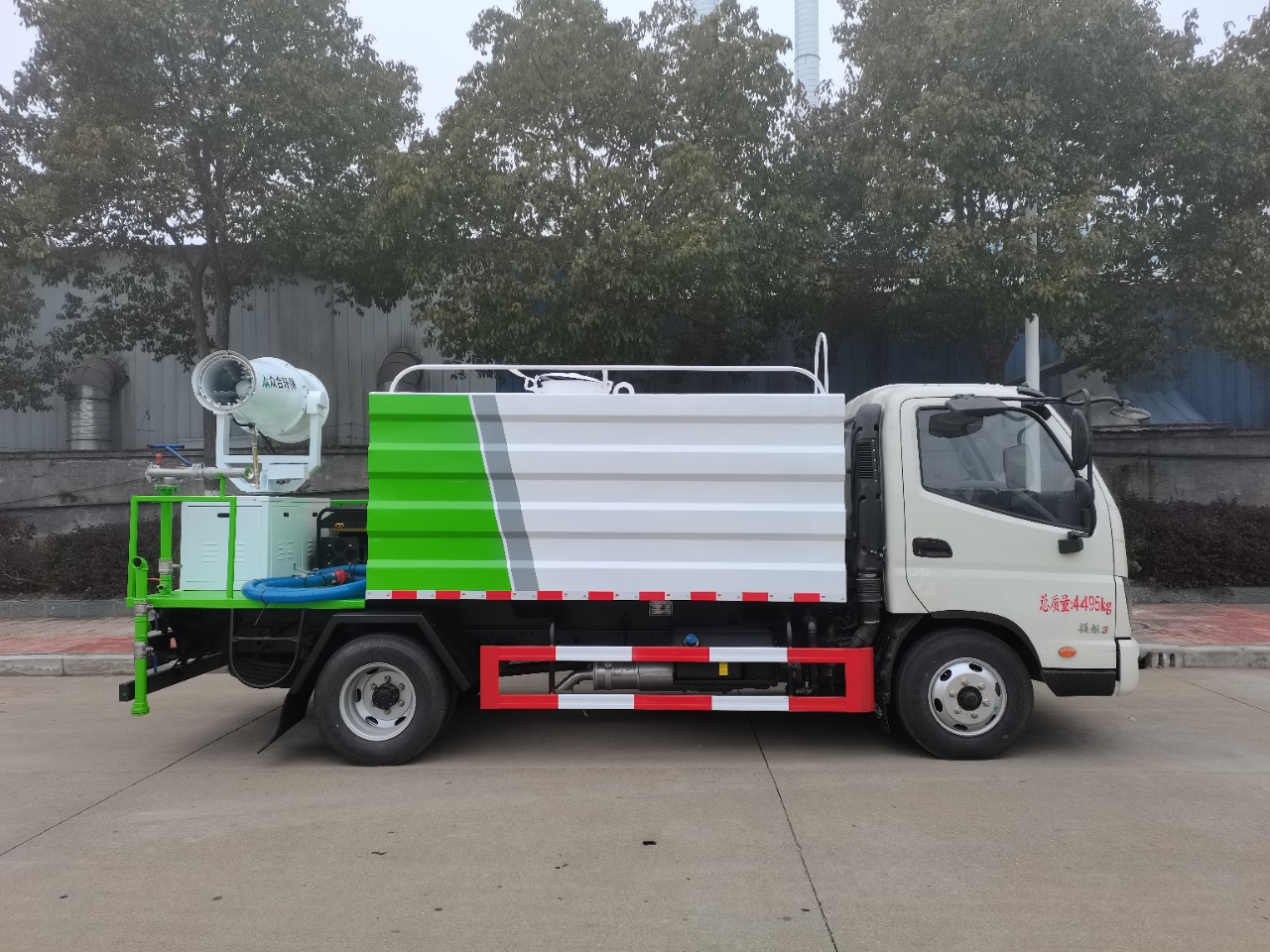 上裝配置:罐體采用國標優質碳鋼制作,方罐外形,容積7立方,配40-50專用灑水泵,帶泵進泵出,主管道加粗,標配對沖,后灑,側噴,后平臺,綠化高炮,后平臺可選裝霧炮裝置。帶2根3米抽水管,其他按灑水車標準。