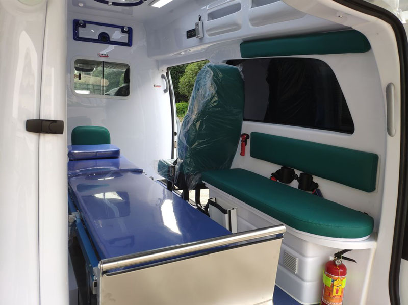 (4) | 護士椅 | 位于擔架前部,座墊采用冷發泡海綿自吸工藝,附安全帶。 |