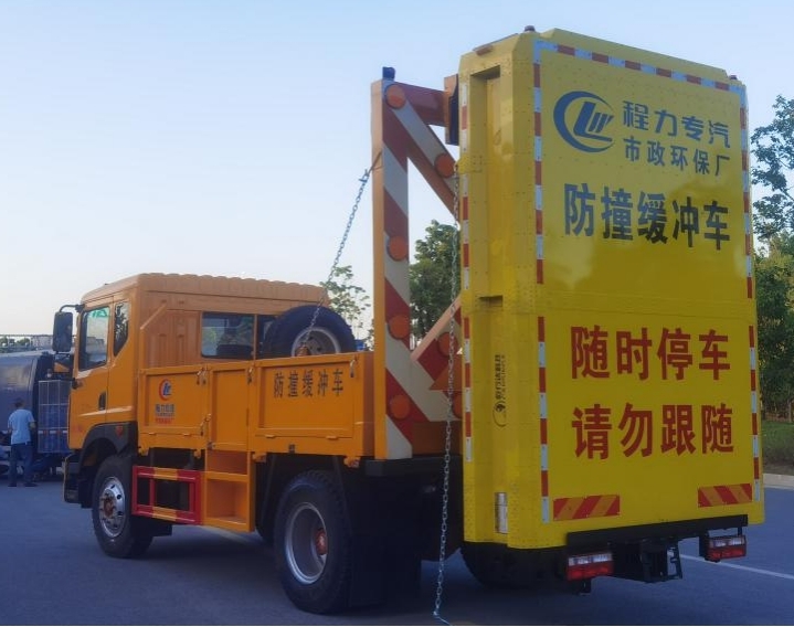 東風100K防撞緩沖車底盤配置:原裝新款多利卡駕駛室高端底盤,底盤型號為EQ1185LJ9CDE,玉柴200馬力國六柴油發動機,軸距3950,295真空胎或10.00鋼絲胎,底盤自帶DPF顆粒捕集器,彈簧片數為8/10+7,帶方向助力、離合助力、空調、帶ABS報死系統,整車外形美觀大方,駕乘舒適。