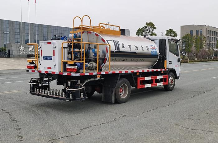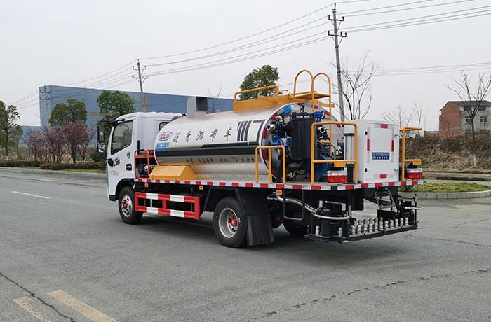 底層的透層油、防水層、粘結層的灑布。該灑布車由汽車底盤、瀝青