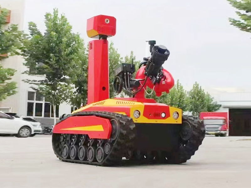 消防滅火機器人采用履帶式底盤、搭載消防水炮、溫濕度變送器、攝像機、照明等不同上裝,代替消防救援人員進入高危、有毒、缺氧、易爆等危險災害事故現場進行探測、救援、滅火,有效的解決消防人員在上述場所面臨的人身安全、數據信息采集不足等問題。可防止火災產生爆炸對人員造成損害。對提高救援安全性、減少人員傷亡具有重要意義。